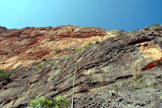 κρίκους και σχοινί έφτασε στο τέλος (στη ρίζα του βράχου), ολοκληρώνοντας